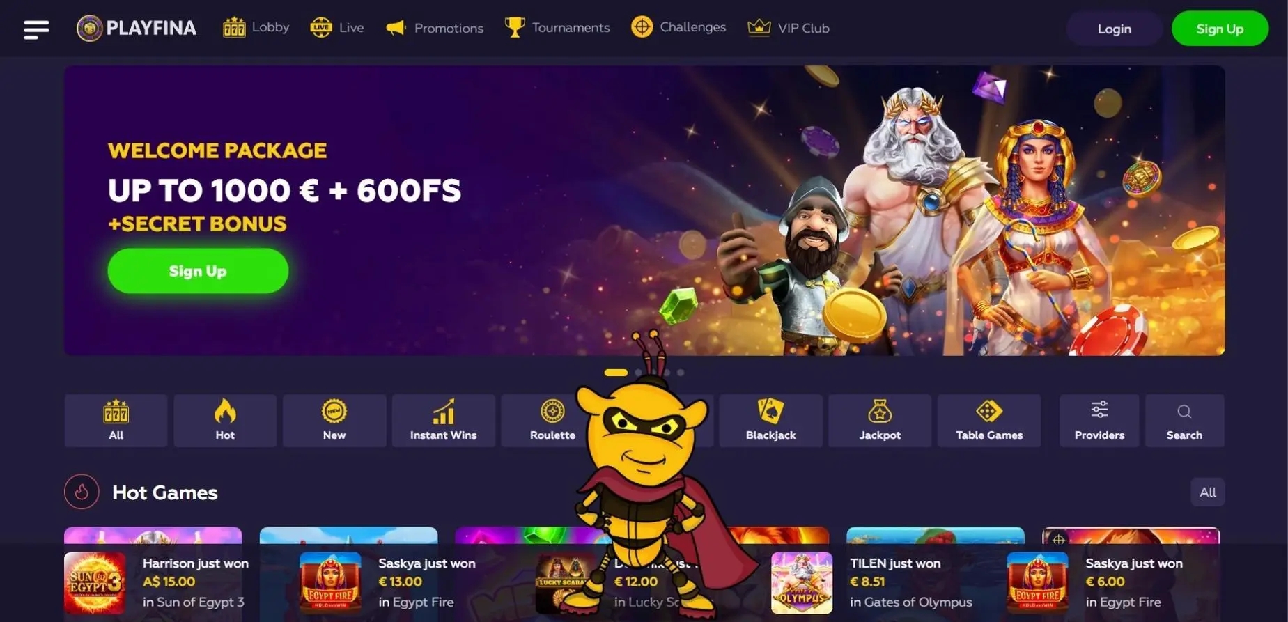 More than 11,000 slots, all varieties of blackjack, dozens of roulette games, craps, video poker, and other games are available to you at Playfina casino online Get the Most Out of Your Gaming Adventure - Unlock Huge Wins with Playfina Promo Codes! Play the Best Online Casino Games at Playfina ✓ Try Slots, Blackjack, Roulette, Craps and Video Poker with Huge Bonuses. Playfina Casino How to Start Up to 1000€ + 200 FS + Secret Bonus... Playfina Casino - Bonus Codes – 50 Free Spins!